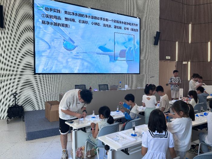 水资源环保课程中,志愿者们通过视频、图片和讲解,向孩子们介绍了水资源的重要性以及当前水资源面临的污染问题。他们还组织孩子们进行了一些简单的实验,如模拟水污染的过程,让孩子们直观地了解水污染的危害;亲手体验净化水的历程,得知净化水的原理。孩子们纷纷表示要从自己做起,节约用水,保护水资源,如随手关闭水龙头、合理循环利用水资源等。实践团成员们还鼓励孩子们向家人和朋友宣传水资源环保知识,让更多的人参与到保护水资源的行动中来。
