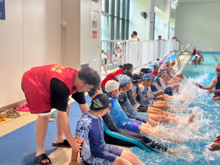泳前准备教泳姿泳池互动乐融融