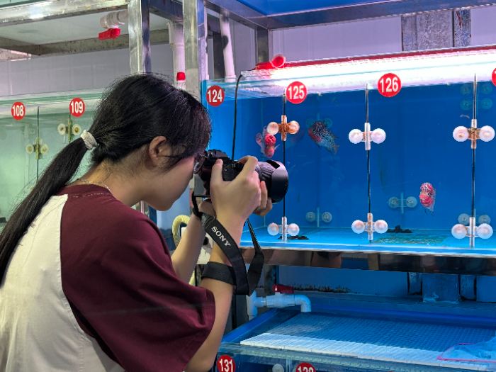 在村民间形成家庭养殖规模的观赏鱼琳琅满目,在温棚养殖区,技术组拍摄了观赏鱼智能化养殖场景,伴随着直播行业的兴盛,更让东灶村的水族珍品走向广阔市场,为养殖产业振兴插上数字翅膀。