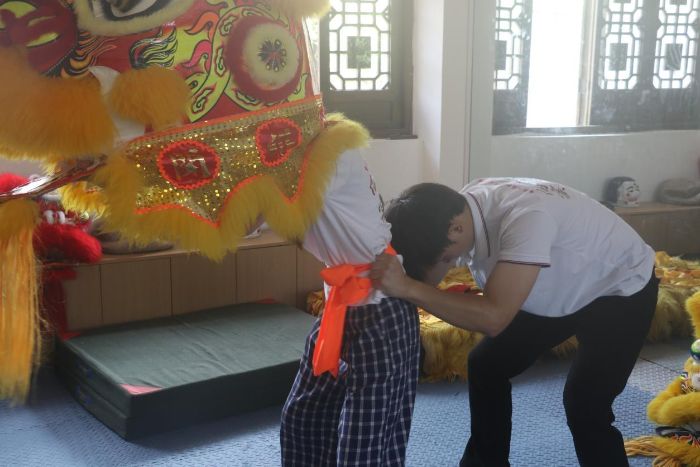 在开州故城狮馆,我攥着狮尾以为自己要当“甩毛大侠”。帮狮头搭档系狮头绑带时,瞅见我俩后背都洇成盐画。真舞起来才懂:她顶狮头得把腰钉成秤砣,我甩尾巴得跟她心跳同频,脚步错半寸,狮子就变成“崴脚猫”。原来威风八面的狮舞,是两个人摔出来的默契——实践这记闷棍,把“看热闹”的莽撞,敲成了“懂配合”的透亮。