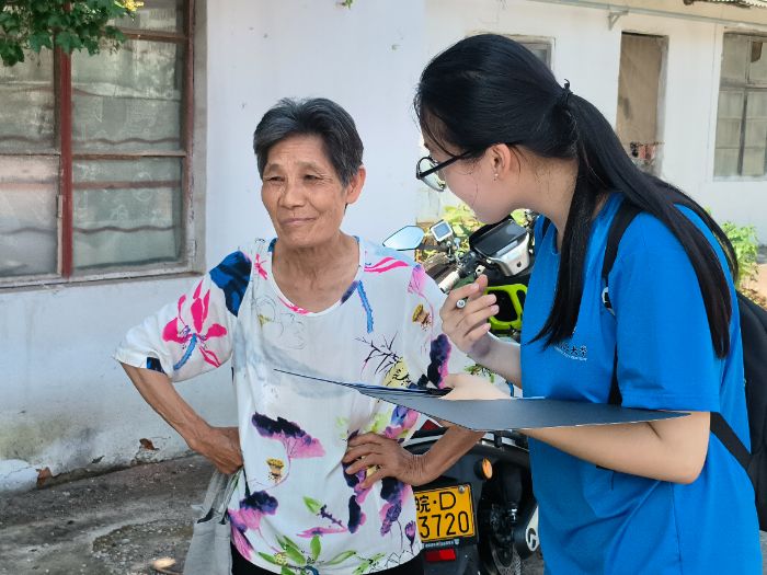(图为团队成员在当地开展红色文化问卷调查 孟庆梅摄)