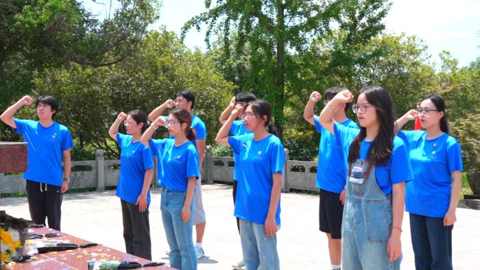 随后,团队成员在烈士纪念碑前庄重献花、重温入团誓词。面对鲜红的团旗,青年学子以铿锵誓言表达对革命先烈的深切缅怀和传承使命的决心。“我们今天的和平生活,是无数先烈用生命换来的。作为新时代青年,更要将这种精神融入日常行动。”队员孟庆梅表示。