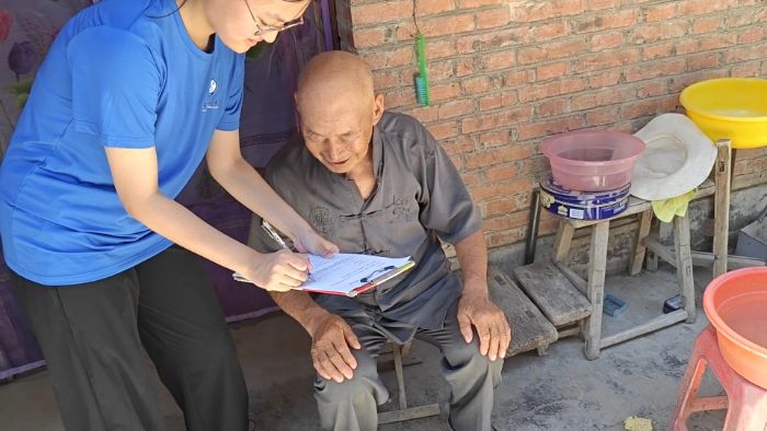 (图为团队成员采访抗日老兵后代 孟庆梅摄)