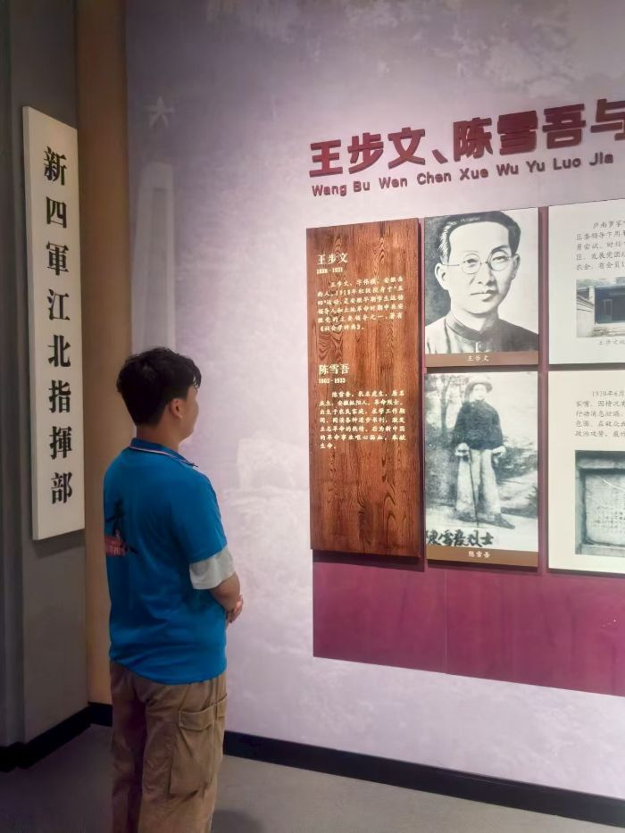 而在“王步文、陈雪吾与罗捷”展区,一名男生静静伫立,凝视着革命先辈的介绍,从王步文投身革命、陈雪吾为革命事业奉献的事迹中,感受先辈们的热血与信仰。