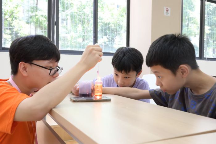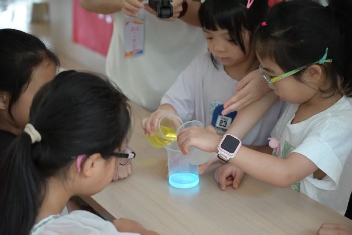 图为小朋友们进行鲁米诺实验 高一帆供图
