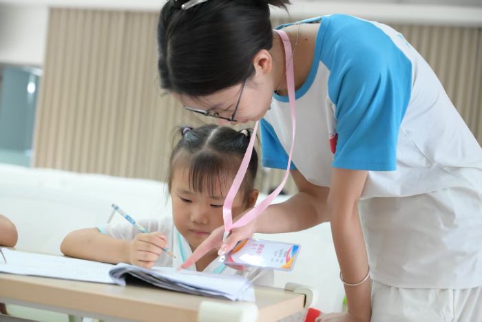 图为志愿者王凤玲为小朋友答疑解惑 张锡松供图