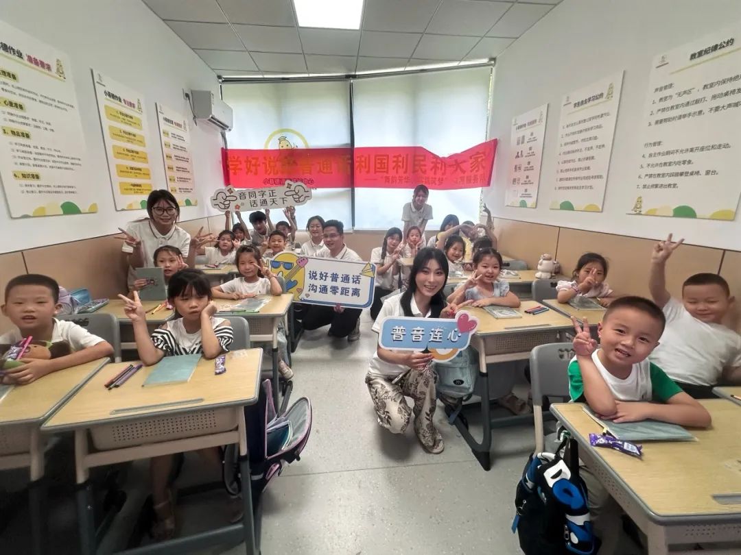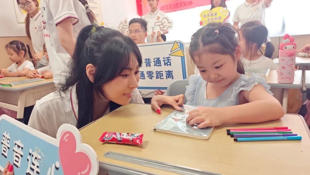 另一组则走进当地暑期托管机构,为孩子们带来集防溺水、防霸凌安全教育与普通话推广于一体的主题课堂。结合幼儿认知特点,队员们用生动易懂的语言讲解安全知识,通过情景图片展示、趣味小故事演绎等形式加深孩子们的理解;同时设计儿歌学唱、词语认读等互动环节,引导孩子们在轻松氛围中提升普通话应用能力。