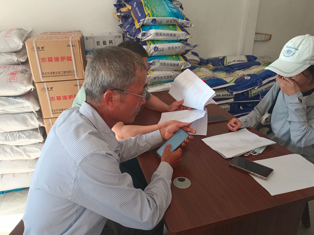 图为团队成员与当地养蟹专家进行问卷交谈邱雪供图
