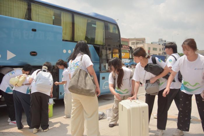 广东科技学院惠艺启楼突击队的队员们怀着难掩的激动,踏上下乡之旅。搬运行李时,众人分工有序:有人托举沉重行囊,有人穿梭于车舱内外,有人细心归置物品。肩扛手搬间,汗水浸湿衣衫,却挡不住眼里的热忱。行李箱碰撞的闷响与轻快的脚步声交织,成了启程前最实在的序曲,为这场远行注入满满元气。