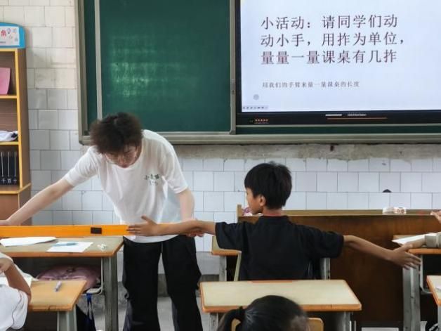 为了激发学生们对数学的兴趣,实践团特意开设了数学魔术、直尺画曲线、排列组合等课程。起初志愿者们还担心,孩子们对这些看似抽象的数学知识接受度不高,可没想到刚演示完一个数学魔术,就有小朋友迫不及待地举手尝试破解其中的规律,还有人拿着数字卡片琢磨起排列组合的不同可能,那份对数学世界的好奇与探索欲,着实让人惊喜。