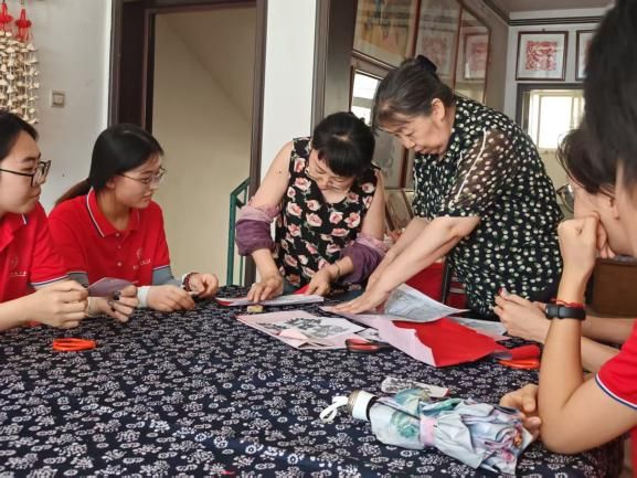 图为余泽玲为实践队员做剪纸示范,张玉坤摄