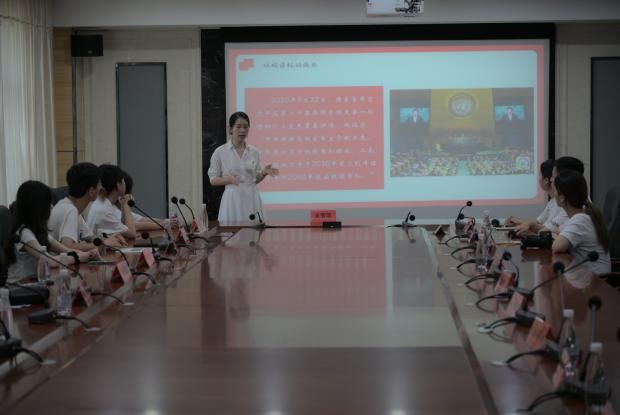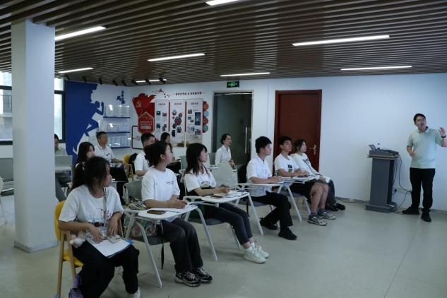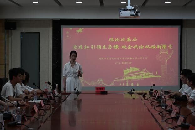 访谈结束后,福建江夏学院经济贸易学院吴雪萍老师以“党建红引领生态绿,校企共绘‘双碳’新图景”为题讲授专题党课,结合企业转型案例与政策解读,引导队员们感悟党建引领在绿色发展中的核心作用。
