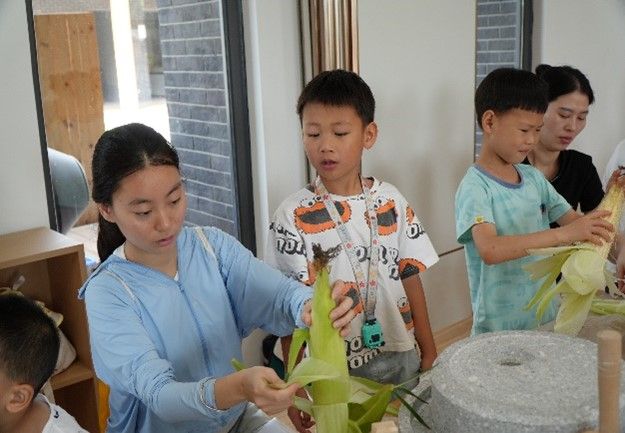 活动当日,内容丰富、趣味盎然。参与者们亲手体验了制作传统美食玉米粑、榨取清凉西瓜汁以及观看爆米花制作的特色课程,在动手实践中感受乡土智慧与饮食文化。孩子们更是兴奋地走进小溪,体验摸鱼捉虾的野趣,在“蓝天白云”下亲近自然。考虑到当日天气炎热,高书记特别安排了精彩的打水仗环节,为活动增添了无限欢乐与清凉,深受孩子们喜爱,现场欢声笑语不断。