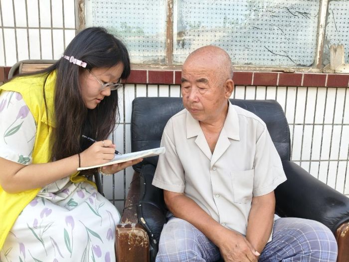 图为实践队员牛辰娟采访老人画面,牛辰娟供稿