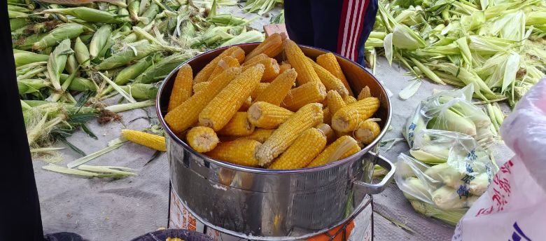 图为民俗街卖的煮玉米 白佳怡供图