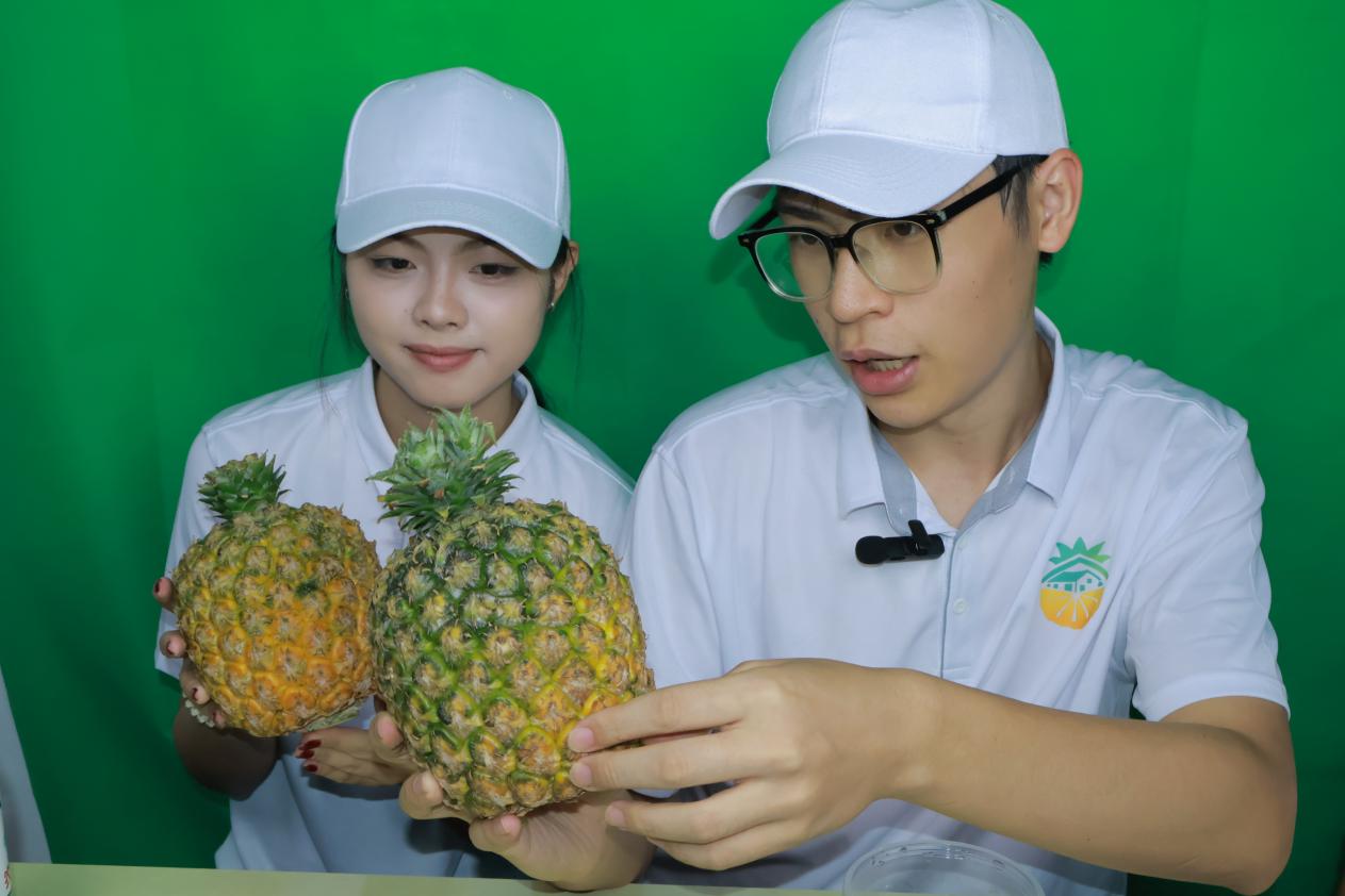 接下来,记者们还对直播现场进行了参观和拍摄。为了让直播更具吸引力和专业性,队员们做了大量准备工作。从设备的调试、直播话术的精心撰写,到对凤梨知识的深入学习,每一个环节都力求做到尽善尽美。