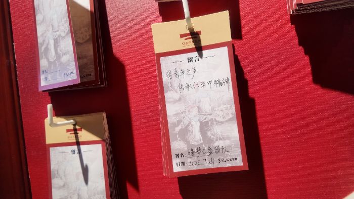 图9:广州工商学院缘梦公益团队突击队成员于红头巾展览馆内留言