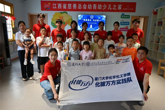 盛夏的赣北乡村,蝉鸣阵阵。在江西省婺源县王村的“幼吾幼少儿之家”,厦门大学化学化工学院“化被万方”实践队为孩子们带来了一场精彩的化学科普夏令营。7月14日至16日三天上午,小小的少儿之家变成了奇幻的科学乐园,惊叹与欢笑是这里最美的乐章。