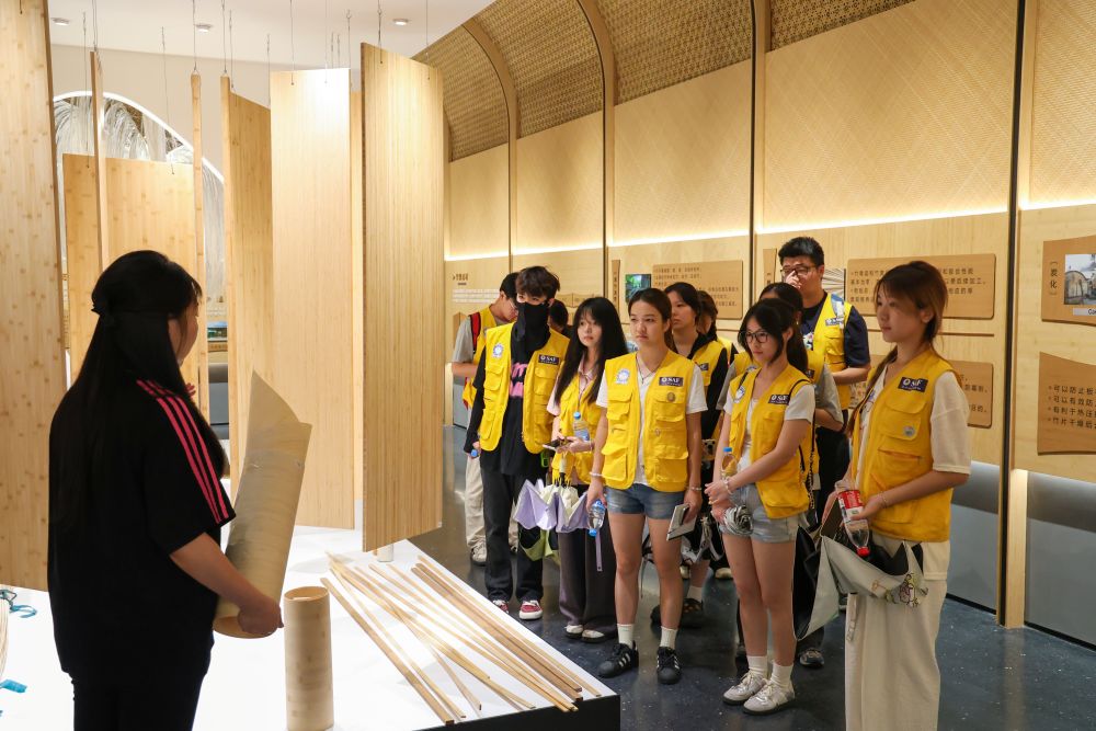 讲解员廖雯婧向队员们介绍,邵武依托年耗5500万根毛竹的扎实产业基础,已构建起“种植—加工—研发—销售”的完整产业链条,更通过数字技术打通市场渠道,让竹制品从本地走向更广阔的舞台。从触感温润的竹艺摆件到性能优越的工业板材,队员们在近距离观察与互动体验中,深切感受到科技创新为传统竹艺注入的鲜活活力,对“生态资源通过科创赋能实现价值跃升”的发展路径有了愈发清晰的认知。