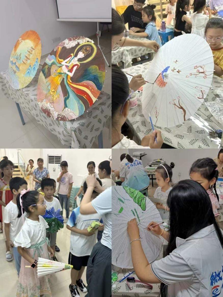 非遗的种子更需播撒未来。实践队调研结束学习后,在四川绵阳社区开展了一堂别开生面的油纸伞“美育+劳育”课,筑牢孩子文化意识与劳动观念。孩子们小手紧握伞骨,彩笔绘就童真。欢声笑语中,伞面绽放的不只是斑斓图案,更是文化自信的嫩芽。实践队将泸州之行的深厚积淀,转化为滋养青少年的美育甘泉。