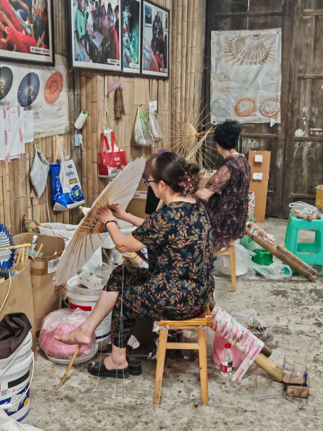 图为当地村镇妇女制作油纸伞。王熙禾供图
