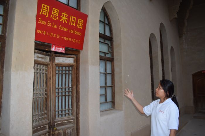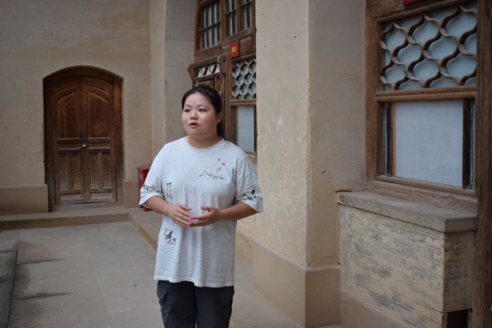在“新院”门前,队员运用米脂乡音,生动解读门楣雕花上历史痕迹的由来,瞬间拉近与本地游客的距离,激发共鸣与互动。移步“毛泽东办公室”,适时融入陕北乡音演唱的《东方红》片段点缀氛围后,随即转入对历史内涵的深入讲解。