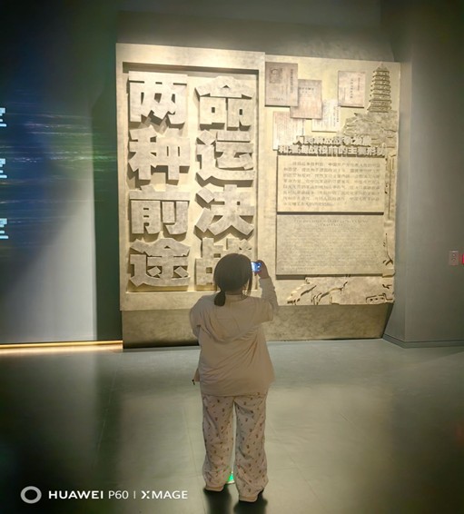 图为实践队队员刘妍拍摄展览区域的浮雕墙。陈思宇摄