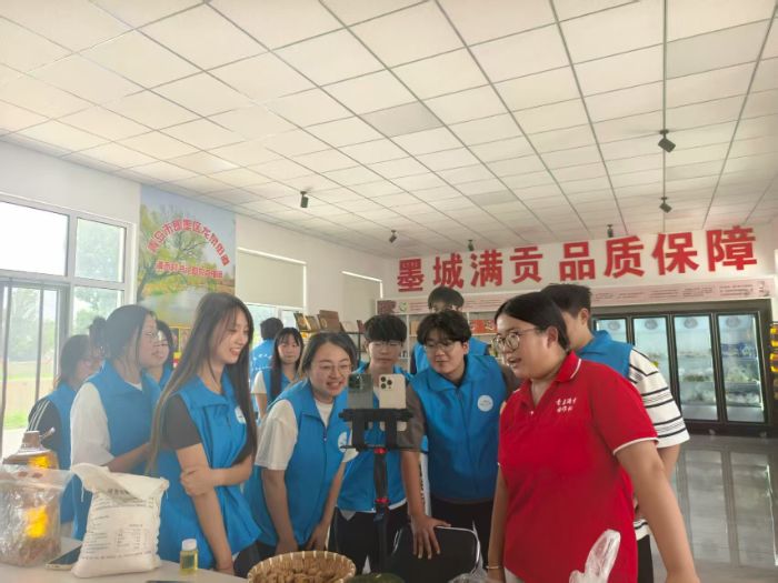 青春力量汇入振兴洪流,直播新业态赋能乡村产业。在国家全面推进乡村振兴战略的壮阔图景下,积极投身乡村实践。7月25日,浓“农”深情,“乡”约振兴实践团成员准时集结,带着向基层经验丰富的刘书记虚心求教的直播“真经”,奔赴满贡生态专业合作社。他们此行,正是为了响应国家“数商兴农”、“消费帮扶”的号召,运用新媒体直播这一新兴业态,为扎根乡土、坚守品质的合作社特色农产品插上“云翅膀”,以实际行动探索青年力量助力乡村产业兴旺、农民增收致富的新路径,为绘就乡村振兴的壮美画卷增添青春亮色