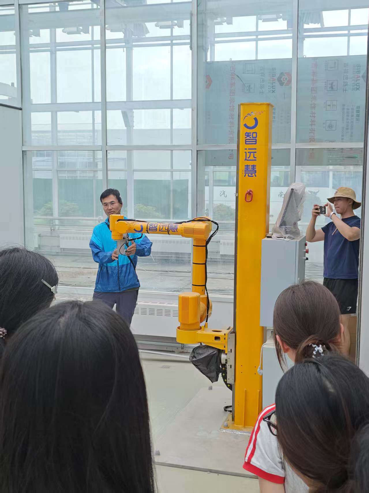 抵达基地后,国家烟草基因研究中心罗朝鹏老师首先引导研究生参观了郑州烟草研究院最新建成的6个功能温室。罗老师详细介绍了基地开展的生物育种相关试验及配套的先进科研设备,并系统讲解了表型组学的基本原理、基于表型平台的研究对象、烟草育苗的关键技术要点、智能机器人系统在烟草打顶作业中的应用流程,以及盆栽实验的设计思路与具体内容,使同学们对生物育种前沿技术有了直观深入的理解。