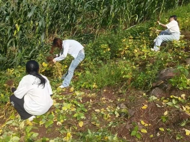(图为队员在黄豆地中劳作。吉惹进去供图)
