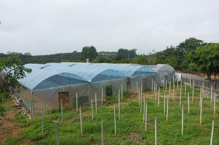 图为调研队员参观专业的科研育苗大棚。黄诗怡摄