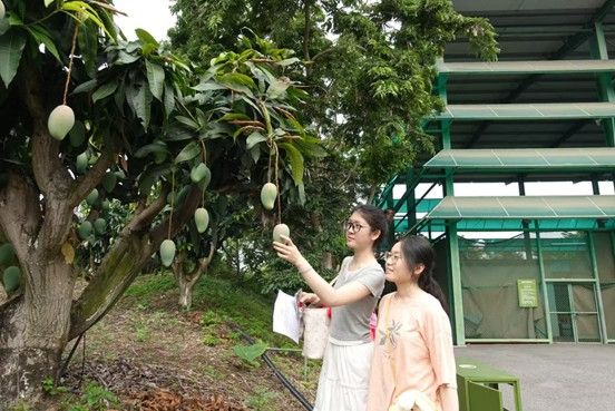 图为调研成员参观研究所内的芒果树 黄诗怡摄