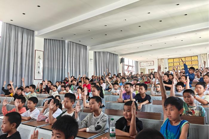 活动的最后,迎来了课堂中最为热烈的游戏问答环节,学生们的积极参与成为禁毒知识有效传递的鲜活注脚。问答内容涵盖了毒品类型判断、情景选择、禁毒热线拨打等多个方面,全场同学十分积极,每当问题一出,纷纷举手抢答。而他们的每一次回答都准确无误,这充分体现了他们对禁毒知识普及活动的专注投入与对课堂内容的深刻理解,更以生动的互动场景印证了本次活动的良好成效。