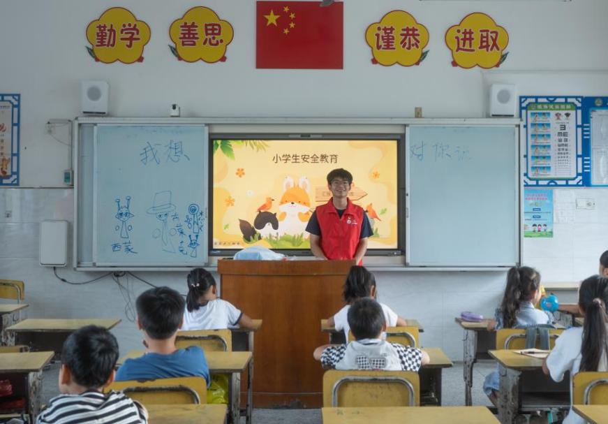 针对乡村夏季安全,团队开设安全教育课,通过动画、情景模拟等讲解防溺水知识,强化孩子们的安全意识。还开展资助政策宣讲,让孩子们了解教育保障;通过“两弹一星”精神宣讲课,引导孩子们树立报国理想。