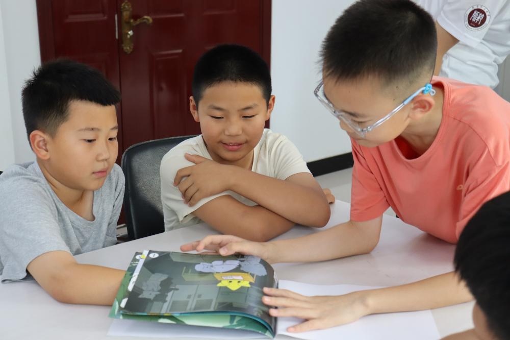 图为儿童在实践团成员指导下阅读绘本。“星语心寰”实践团摄