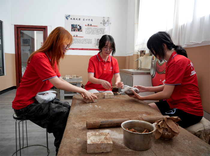 观赏过这些精妙绝伦的泥塑作品,实践团成员们跃跃欲试,在传承人的指导下,纷纷动手尝试制作凤翔泥塑。他们小心翼翼地拿起泥料,看似简单的动作,实际操作起来却并不容易。泥料的干湿程度、按压的力度大小,都影响着泥塑的成型。成员们相互交流、反复尝试,虽然手上沾满了泥污,但当看到自己亲手制作的泥塑雏形逐渐显现时,脸上都露出了欣喜的笑容,贴切体会蕴含在泥塑作品中的人文情怀。
