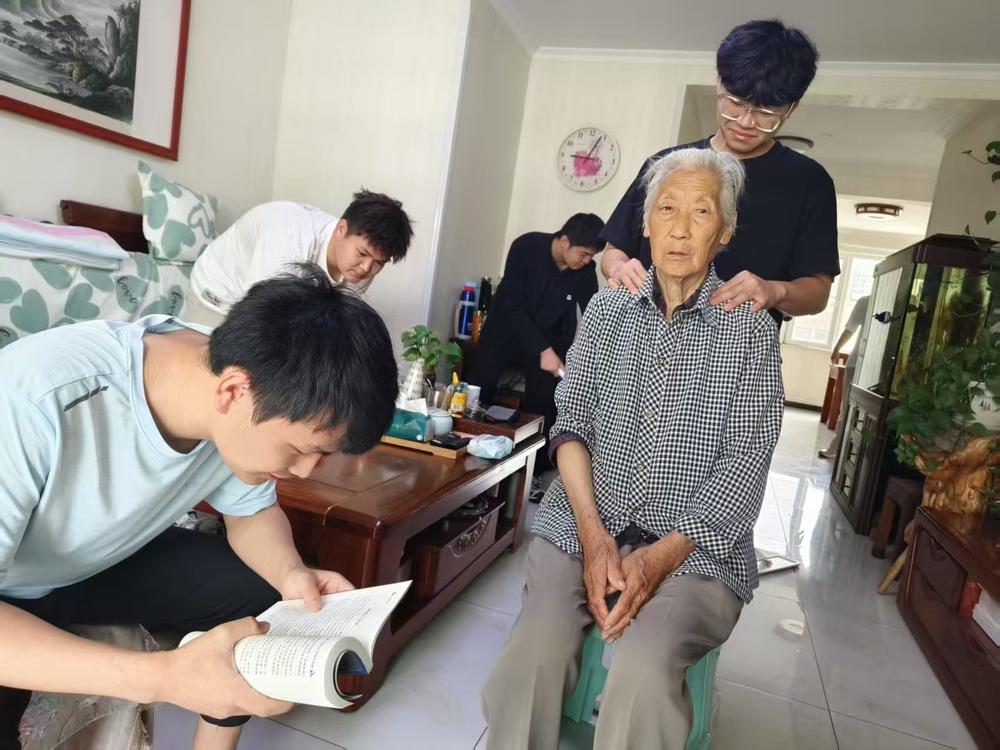 在实践过程中,为确保老人舒适的生活环境实践团成员在医保站专业人员指导下为老人按摩,为老人阅读,实践团成员充分发挥自身优势,为活动顺利开展奠定基础。