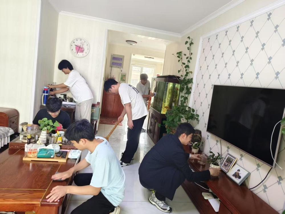 图为实践团成员为老人读书实践团成员为确保工作效率,一起上手打扫地面,桌面,浴缸等地方的卫生,工作人员为我们拍下了辛勤的身影,为老人家打扫卫生这个行为传递的是实践团的爱,表达出实践团成员对于老人的尊重和对社会的贡献。