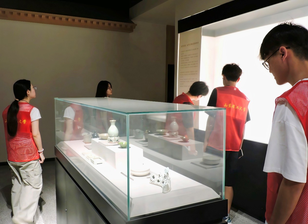 晨光微熹中,山东理工大学管理学院“沂”心筑梦实践团于2025年7月25日踏上了前往临沂琅琊陶瓷琉璃馆的旅程。作为高校文化传承实践项目的重要一环,此次研学旨在通过实地探访,近距离触摸陶瓷琉璃文化的历史脉络,在器物流转间感知传统工艺的温度。临沂琅琊陶瓷琉璃馆作为当地极具特色的文化场所,建筑面积达1704平方米,展陈面积1255平方米 ,馆内现有一个基本陈列《集瓷雅韵——南北名窑瓷器文化展》,馆藏瓷器窑口类别多样,基本涵盖西晋至民国各个时期的典型器物,目前备案藏品310件(套),馆藏品1570件(套)。这里不仅展示了琳琅满目的陶瓷琉璃精品,更通过丰富的史料和实物,生动地展现了陶瓷琉璃文化的发展脉络。