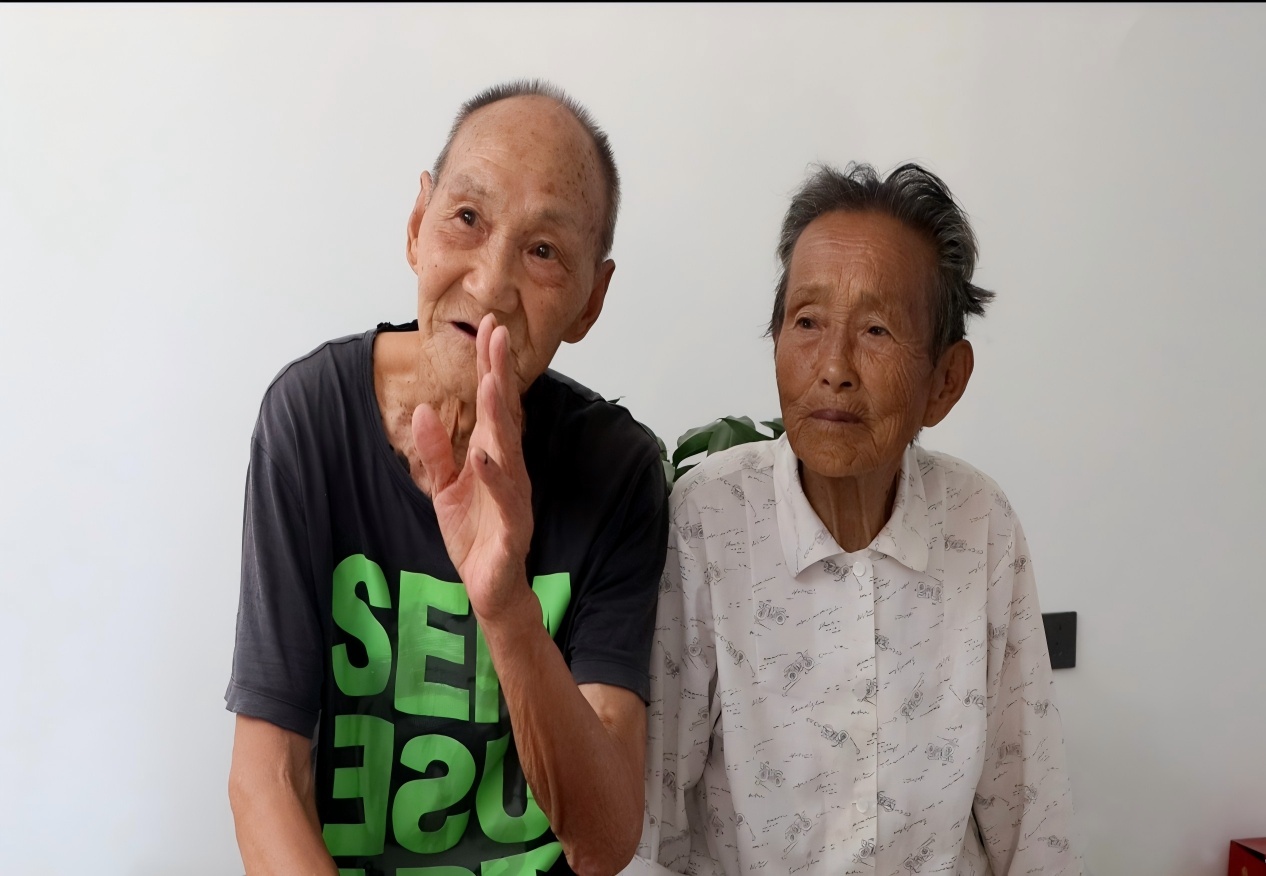 提及如今的生活,老人眼中泛起暖意:“政府一直记挂着我们,这房子就是政府帮忙建的,日子安稳得很。” 话语间满是对当下生活的感恩。当话题转向当年的恋人、如今的老伴,一旁的奶奶轻声忆起那句穿越 70 载风雨的承诺:“你放心去,我在家守着等你。” 话音未落,两位老人饱经沧桑的双手紧紧相握,四目相对间无需多言,岁月的流转与深情的坚守静静流淌。