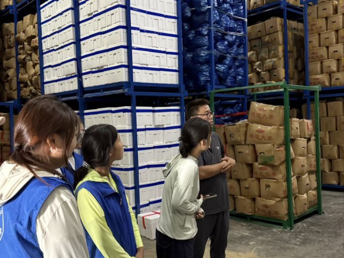 在临泉县中姜农业科技有限公司,志愿者们深入生产一线,实地探访生姜精深加工的现代化工艺流程。深入探访生姜精深加工全流程。企业负责人带领志愿者们实地参观了烘干、冷藏、分拣三大核心车间,全面了解生姜从初级农产品到标准化商品的转型升级之路。在烘干车间,负责人详细介绍了阶梯式温控烘干工艺:"这项技术既能保留生姜活性成分,又能确保干燥均匀,大大延长了产品保质期。"冷藏车间内,4座大型冷库在13-15℃恒温环境下可储存4000吨生姜,为姜农应对市场波动提供了有力保障。分拣车间里,工人们正严格按照标准进行清洗、筛选,每块生姜都要经过三道质量检验“通过自动化设备与传统人工的有机结合,我们实现了产品标准化生产。”负责人手持去皮生姜向队员们讲解质量标准。参观过程中,志愿者们深刻体会到科技创新对传统农业的改造提升,认识到产业链延伸和价值提升对乡村振兴的重要意义。
