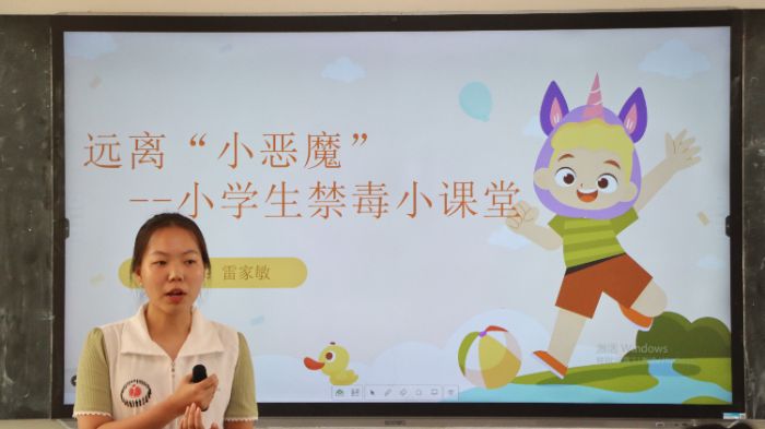 图为老师使用形象的方式讲解毒品危害+“籽籽同行”突击队摄