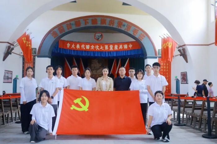 离开枣园,实践团来到杨家岭革命旧址。这里是中共中央领导机关在延安的重要驻地,党的七大和延安文艺座谈会均在此召开。党的七大确立了毛泽东思想作为党的指导思想,实现了全党的空前团结,见证了中国共产党从成熟走向辉煌的关键历程;延安文艺座谈会明确了文艺为人民大众、为工农兵服务的方向,为革命文艺的发展注入了鲜活生命力,凝聚起军民同心、抗日救国的伟大力量。