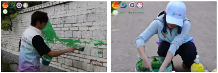 图为风信子”墙绘艺术实践团成员在做墙绘前期工作准备 杨锦轩 供图