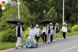 图为风信子”墙绘艺术实践团成员前往榕木水村进行墙绘工作 杨锦轩 供图