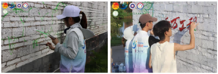 图为风信子”墙绘艺术实践团成员在为瓦墙添彩 杨锦轩 供图