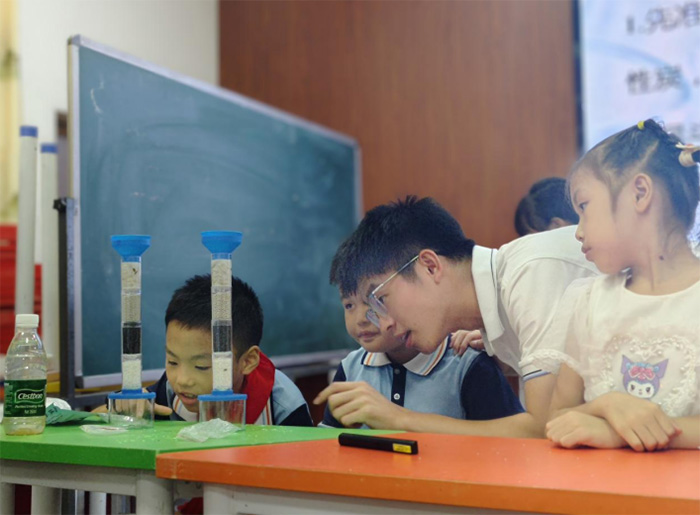 活动过程中,突击队队员以严谨且通俗易懂的方式,向学生们阐述了水资源的重要性,详细介绍了多种净水方法以及污水厂的处理流程。为增强学生的实践体验,队员们还现场指导学生自制净水器,在孩子们心中播撒下环保的种子,助力培养其环保意识与实践能力。