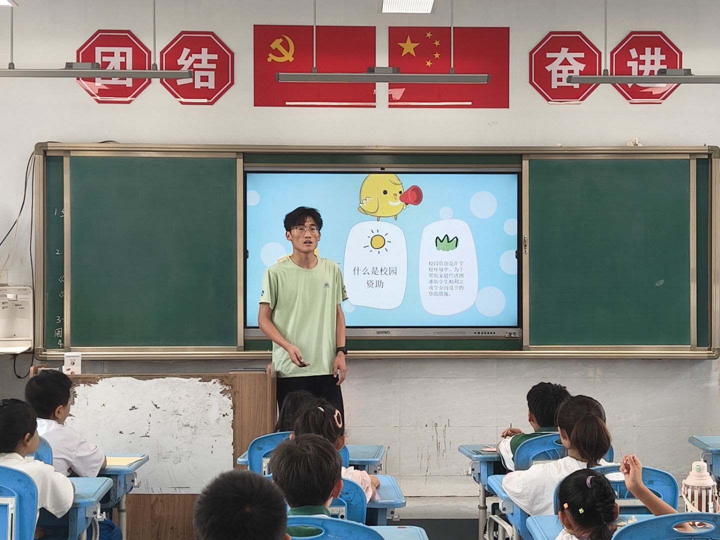 7月1日,河南城建学院材料与化工学院实践团走进阳光小学,开展了一场别开生面的资助知识普及活动。实践团成员以生动易懂的语言,向孩子们系统讲解了国家资助政策的种类,涵盖义务教育阶段的学杂费减免、生活补助,以及未来升学可能涉及的助学金、奖学金等,并用“邻居家哥哥靠助学贷款圆大学梦”等身边案例,让孩子们直观理解政策如何为成长护航,悄然化解他们对求学经济压力的隐忧。