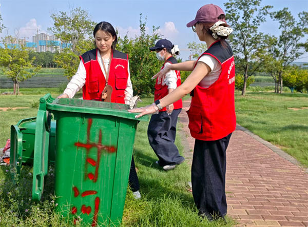 在甘泉河湿地,成员们充分发挥专业优势,开展植物种类调研工作。他们仔细观察、记录各种植物的形态特征,运用专业知识进行物种鉴定,并对部分植物的生长环境进行评估,为后续生态保护提供科学依据。调研结束后,成员们还自发组织了一场垃圾清理行动。他们身穿志愿服,手持垃圾袋和工具,徒步沿河岸和步道进行清洁工作,用实际行动践行环保理念。整个团队戮力同心共同完成河道范围内河面无垃圾、河堤无污染、绿化无破坏的管护目标,为实现河畅、水清、岸绿、景美献出了自己的力量。
