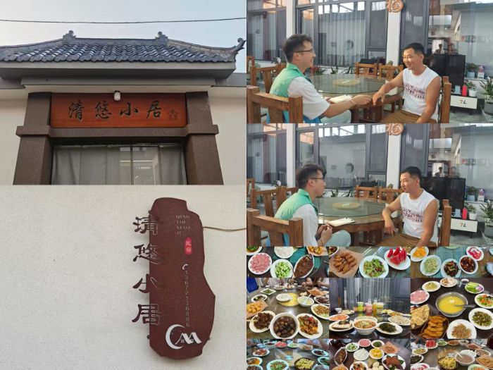画面中,“清悠小居”的招牌古朴雅致,彰显着农家院的独特韵味。同时,丰富多样、色香味俱全的农家菜肴摆满桌面,让人垂涎欲滴。这些元素共同展现出“清悠小居”农家院的特色与魅力,也体现出团队成员对农家院的深入探访和对乡村美食文化的探寻。